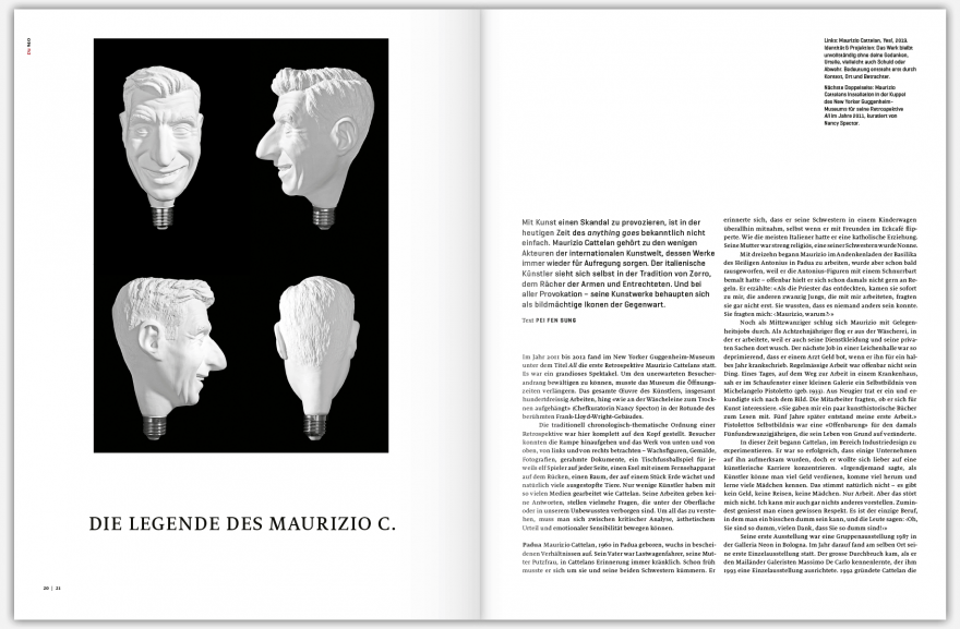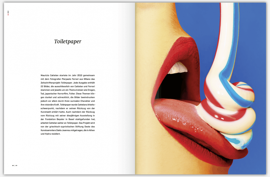 Maurizio Cattelan macht sich lustig. Aber er ist auch schwermütig. Er ist komisch und tragisch zugleich. Wann immer er eine Bühne betritt, hält er sogleich Ausschau nach einem Fluchtweg. Es zieht ihn nicht ins Licht. Trotzdem inszeniert er immer auch sich selbst. Sein ganzes Leben lang wollte er ernst genommen werden, und jetzt, da man ihn ernst nimmt, ist es ihm nicht mehr wichtig. Maurizio Cattelan ist ein Bündel von Widersprüchen, und diese Widersprüche kultiviert er mit Hingabe. Noch nie hat er einen Meissel selbst in die Hand genommen, und er hat auch kein Atelier, und trotzdem schaffte er es 2011 zu einer Retrospektive im New Yorker Guggenheim-Museum. Unter dem Titel All hingen rund 130 seiner Werke in der Rotunde des berühmten Frank-Lloyd-Wright-Gebäudes. Besucher konnten die Rampe hinaufgehen und das Werk von unten und von oben, von links und von rechts betrachten – Wachsfiguren, Gemälde, Fotografien, gerahmte Dokumente und viele ausgestopfte Tiere. Diese Du-Ausgabe ist eine aktualisierte Retrospektive der Ausgabe zur damaligen Guggenheim-Ausstellung. Anlass ist, dass Cattelan 2026 den Preis der Nationalgalerie in Berlin erhält. Damit verbunden ist eine grosse Soloausstellung, die während der Berlin Art Week im September eröffnet wird. Der Preis ehrt Cattelan als «eine der einflussreichsten Stimmen der zeitgenössischen Kunst». Cattelan schwört auf die Macht des Bildes: «Mein Ausgangspunkt ist immer ein Bild, nie eine bestimmte Aussage. Mir geht ein Bild durch den Kopf. Es beschäftigt meine Fantasie, und am nächsten Tag ist es noch immer da. Ich kann dieses Bild nicht reduzieren oder überhaupt vergessen. Also fange ich mit der Arbeit an. Ich überlege mir alle Möglichkeiten und versuche dann, die Idee herauszuarbeiten. Eine Synthese der Idee zu finden. Das ist das Allerschwierigste.» Fake oder echt – das ist nicht so wichtig. Wenn es um die Fantasie geht, kann man das nie genau unterscheiden. «Positives und Negatives, Gutes und Böses, Verbote und Tabus, Wahrheit und Täuschung – in Cattelans Fantasie ist alles enthalten», schreibt die Autorin Pei Fen Sung in ihrem Porträt. Cattelan lässt sich nicht festlegen. Er hält sich an keine Ordnung, stellt sich selbst infrage, untergräbt das System von innen, fordert unsere Wahrnehmung und unsere Sehgewohnheiten heraus. Seine Arbeiten sind eingebettet in Versagensangst und in ein tiefes Bewusstsein von Tragik, Verlust und Tod und werden, angereichert mit humorvollen Wendungen, in eindrucksvollen Bildern präsentiert. Das gilt auch für Cattelans Publikation namens Toiletpaper, benannt im Sinne der ultimativen Entsorgbarkeit von Printerzeugnissen, das er gemeinsam mit dem italienischen Modefotografen Pierpaolo Ferrari herausgibt. Für Cattelan sind die Toiletpaper-Fotos «beinahe Kunst». Einige, so glaubt er, könnten irgendwann den Status von Kunstwerken erlangen, aber erst, wenn sie sich bewährt haben in der Welt, erst, wenn sie ikonisch geworden sind. Und so bietet Toiletpaper Cattelan einen Ausweg. Das Magazin ermöglicht ihm, den Erfolg seiner Fotografien zu testen, ohne sich dabei dem Druck des Kunstmarkts auszusetzen.