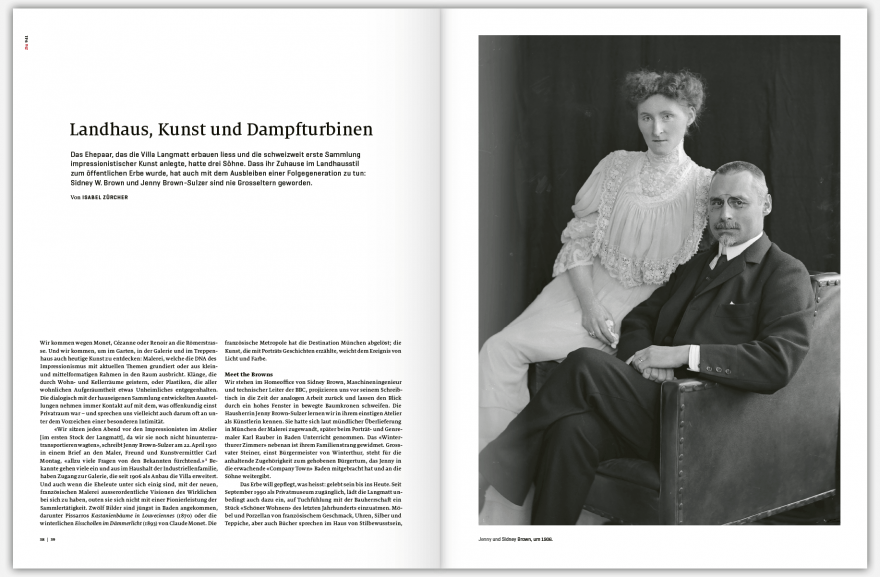 Das Ehepaar, das die Villa Langmatt erbauen liess und die schweizweit erste Sammlung impressionistischer Kunst anlegte, hatte drei Söhne. Dass ihr Zuhause im Landhausstil zum öffentlichen Erbe wurde, hat auch mit dem Ausbleiben einer Folgegeneration zu tun: Sidney W. Brown und Jenny Brown sind nie Grosseltern geworden.