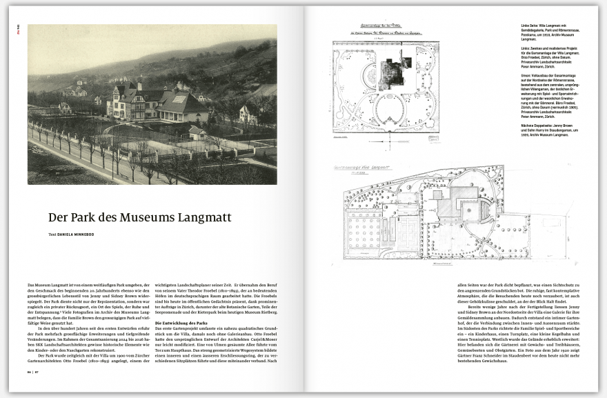 Die in einem parkartigen Garten situierte Villa Langmatt ist nicht nur Heimstatt einer eindrücklichen Kunstsammlung, sondern auch ein lebendiges Baudenkmal. Sie führt wichtige Tendenzen der Architektur um 1900 ebenso vor Augen wie Wandlungen und Weiterentwicklungen, welche die Zeitläufe reflektieren.